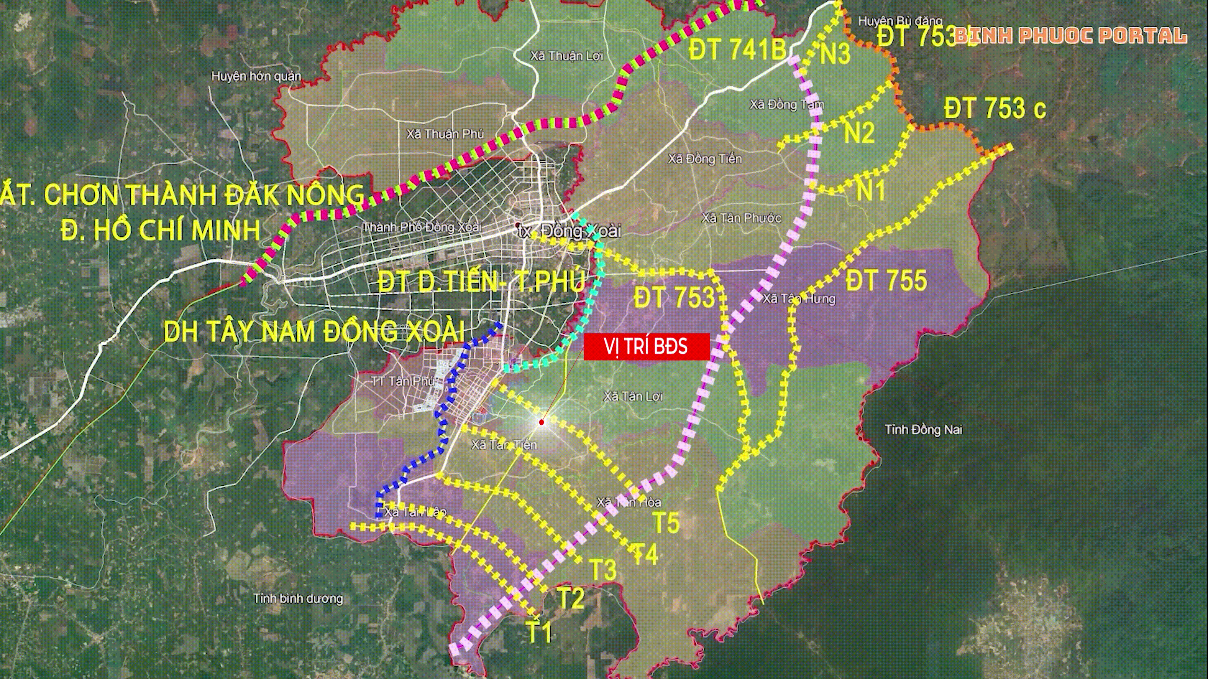 Trục xuyên tâm rộng 32m kết nối trực tiếp từ trung tâm Đồng Xoài với các trục huyết mạch Đông Tây số 1, 2, 3, 4, 5 và Đồng Phú Bình Dương, mỗi tuyến rộng từ 65 – 75m hiện đang được đẩy nhanh tiến độ thi công, góp phần hình thành mạng lưới giao thông liên hoàn, hiện đại, tạo nền tảng phát triển công nghiệp, logistics, đô thị hóa vùng lõi, gia tăng giá trị bất động sản khu vực và đặc biệt cư dân trên tuyến đường xuyên tâm sẽ là những người hưởng lợi sớm nhất từ làn sóng phát triển hạ tầng đô thị.